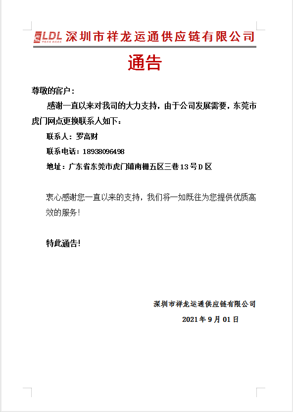 關(guān)于虎門更換聯(lián)系人通告